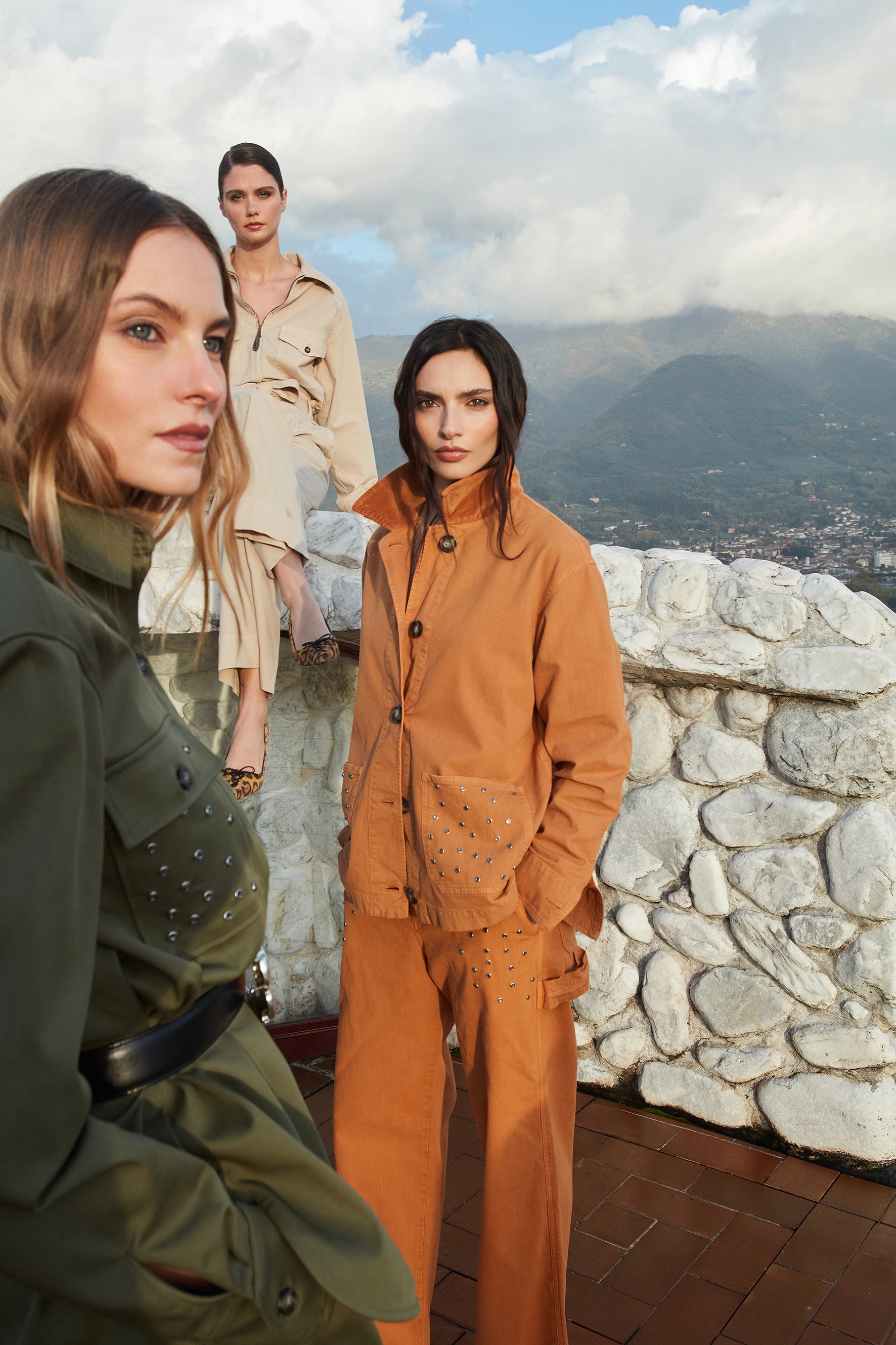 Velluto, jersey, panama fiammata, ciniglia e denim stretch definiscono la palette della collezione. Trame ricercate come la resca o il chicco di riso, inserti luminosi come paillettes e borchie, donano profondità e carattere. Ogni tessuto è scelto per garantire protezione termica e al tempo stesso un’eleganza che resta fedele al DNA Mason’s.