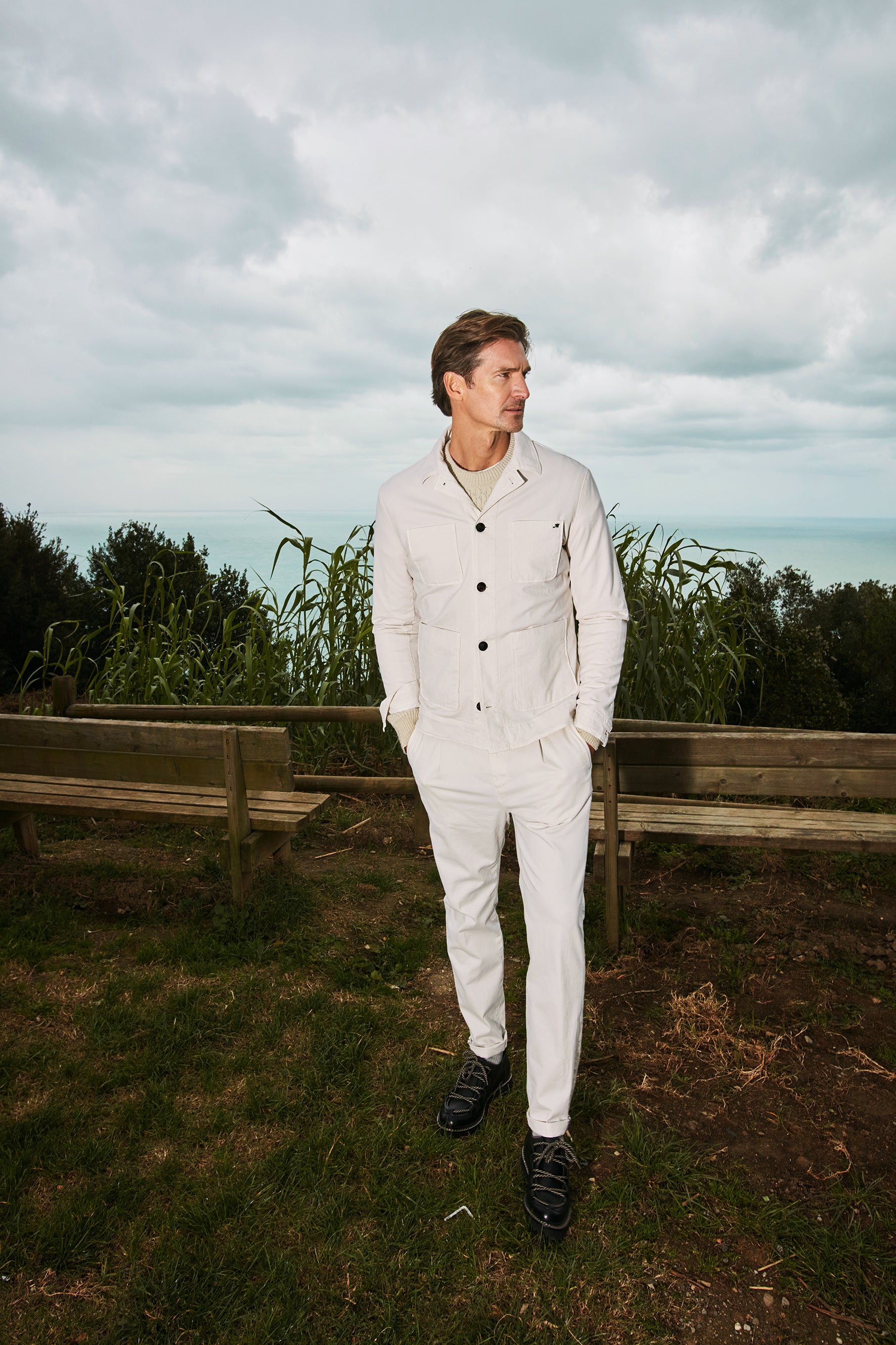 I pantaloni New York e Osaka, pilastri della collezione Mason’s, vengono riproposti in tessuti premium che ne amplificano il carattere sartoriale. Le pinces, la chiusura a coda di rondine e l’iconico rivetto M rimangono segni distintivi, ma è la materia a ridefinirne l’essenza: fibre nobili che donano nuova profondità e un’eleganza discreta, destinata a durare nel tempo.